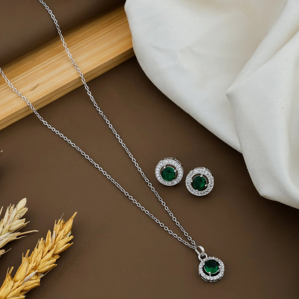 Enhance your style with this Emerald Green CZ Pendant Set, designed to offer a luxurious and elegant look.
