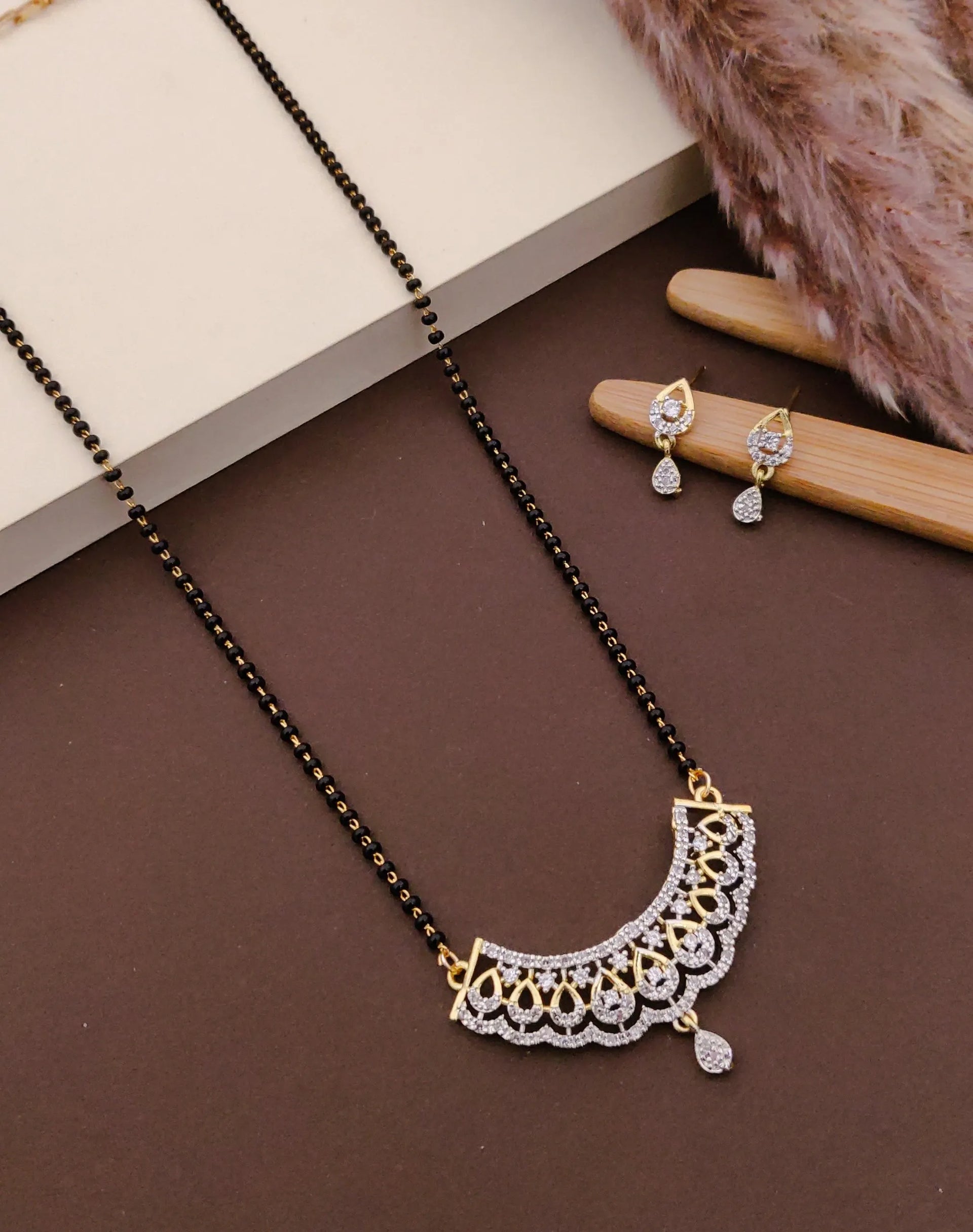 Elegant Lace-Design Mangalsutra with Earrings
